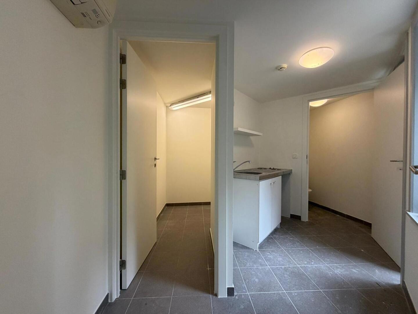 Deze handelsruimte bevat een bruikbare oppervlakte van 127m2 en bestaat uit een inkom met trap naar het benedenverdiep, de 1ste bureelruimte met berging, de technische berging, een 2de bureelruimte met opslagruimte, een derde bureelruimte met toegang naar de buitenruimte van 30m2, een afzonderlijke keuken, een apart toilet en berging.