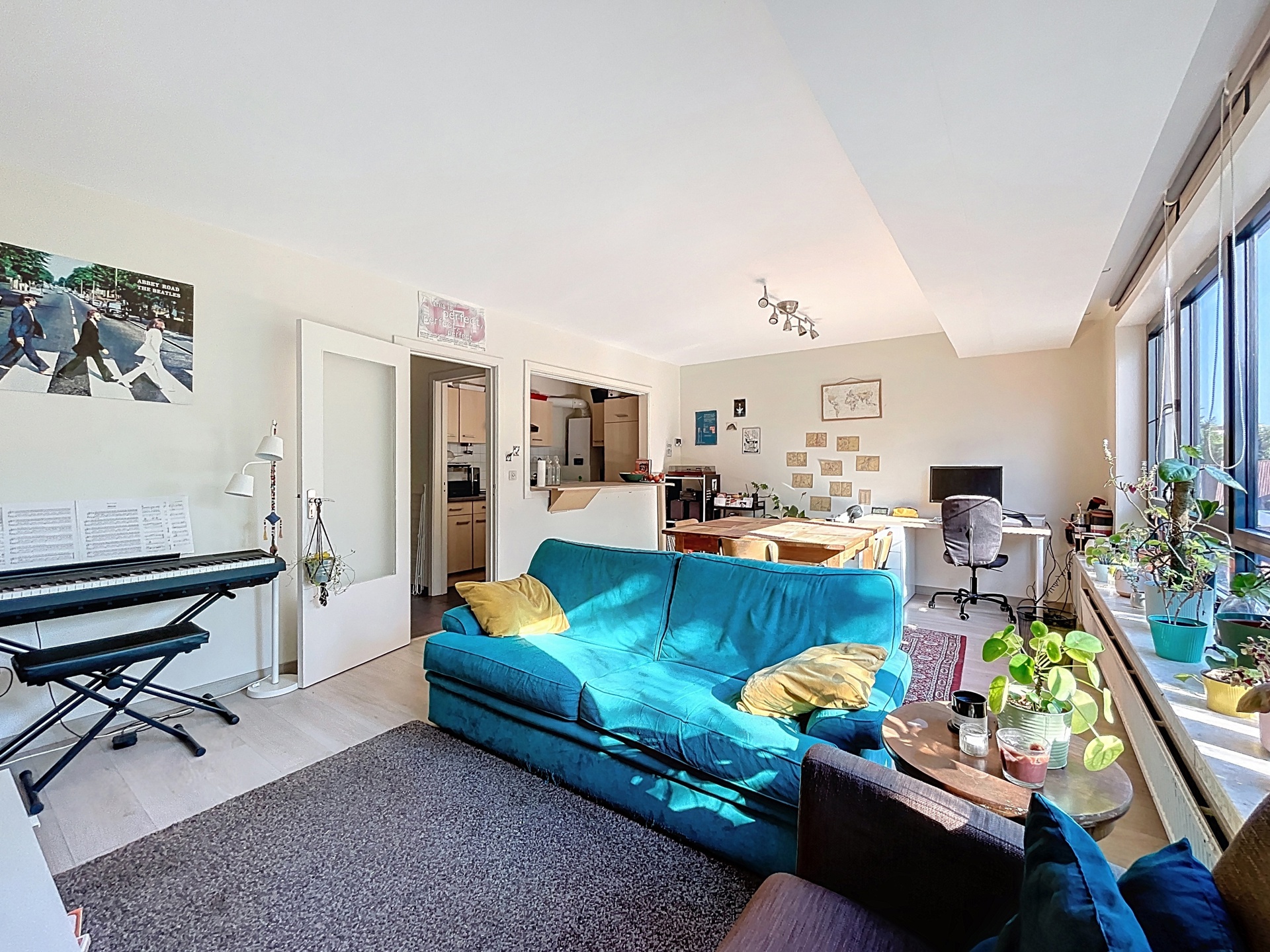 Gelegen op de vijfde verdieping van de residentie “Pasteur” geniet dit appartement van een mooi open zicht. U komt binnen via de inkomhal die toegang biedt tot de lichte en ruime leefruimte, afgewerkt met een warme parketvloer. Dankzij de grote zuidwestgerichte raampartijen baadt de ruimte in natuurlijk licht en geniet u van een aangename sfeer. Aansluitend bevindt zich de geïnstalleerde keuken.