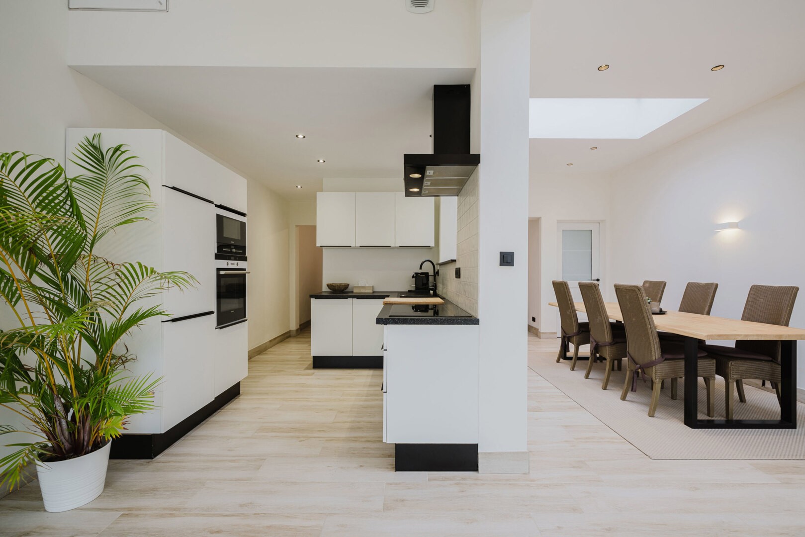 Bij binnenkomst wordt u verwelkomd in een ruime inkomhal die toegang biedt tot een lichtrijke en gezellige leefruimte, bestaande uit een zit- en eetgedeelte. De volledig uitgeruste moderne keuken is voorzien van alle toestellen en staat in directe verbinding met de tuin en het zonnige terras. Een extra voorruimte, toegankelijk vanuit de inkomhal, kan perfect dienen als bureau, speelruimte of bijkomende leefruimte. Via de grote raampartijen is er zowel vanuit de leefruimte als vanuit de keuken toegang tot het terras en prachtige tuin. Op het gelijkvloers vindt u bovendien een gastentoilet, een praktische wasplaats en extra bergruimte (boven de keuken), zodat comfort en functionaliteit volledig gewaarborgd zijn.