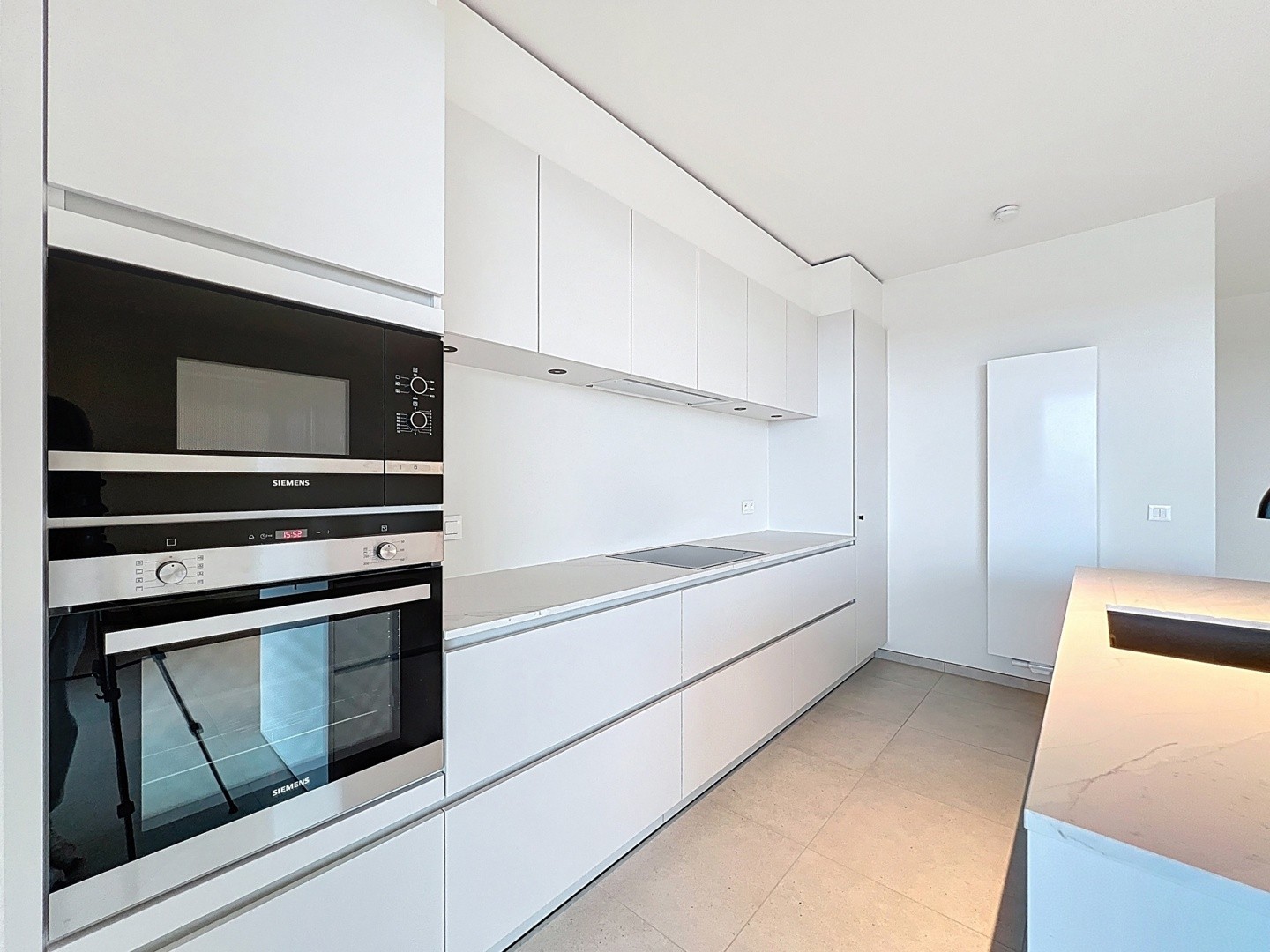 Het appartement gelegen op het 9de verdiep bestaat uit een woonkamer met een open geïnstalleerde keuken, een badkamer met inloopdouche, een dressing, een slaapkamer en een berging. Door de het gebruik van grote raampartijen en via het terras heeft u een overzicht over de stad Waregem en de Vijvers.