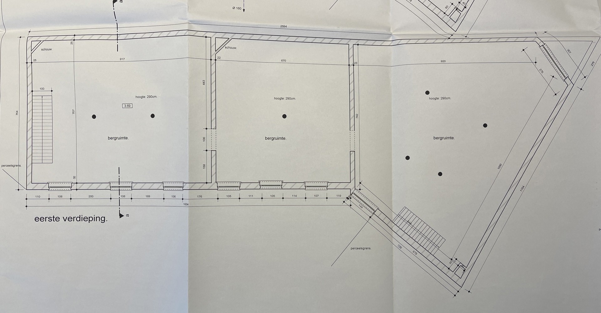 De loods / het magazijn beschikt over ruime opslag- of werkruimte, aangevuld met kantoren op de verdieping. Deze bieden een comfortabele en professionele werkomgeving. De kantoren zijn voorzien van hoogrendementsbeglazing, muur- en dakisolatie en verwarming via een lucht/lucht warmtepomp.