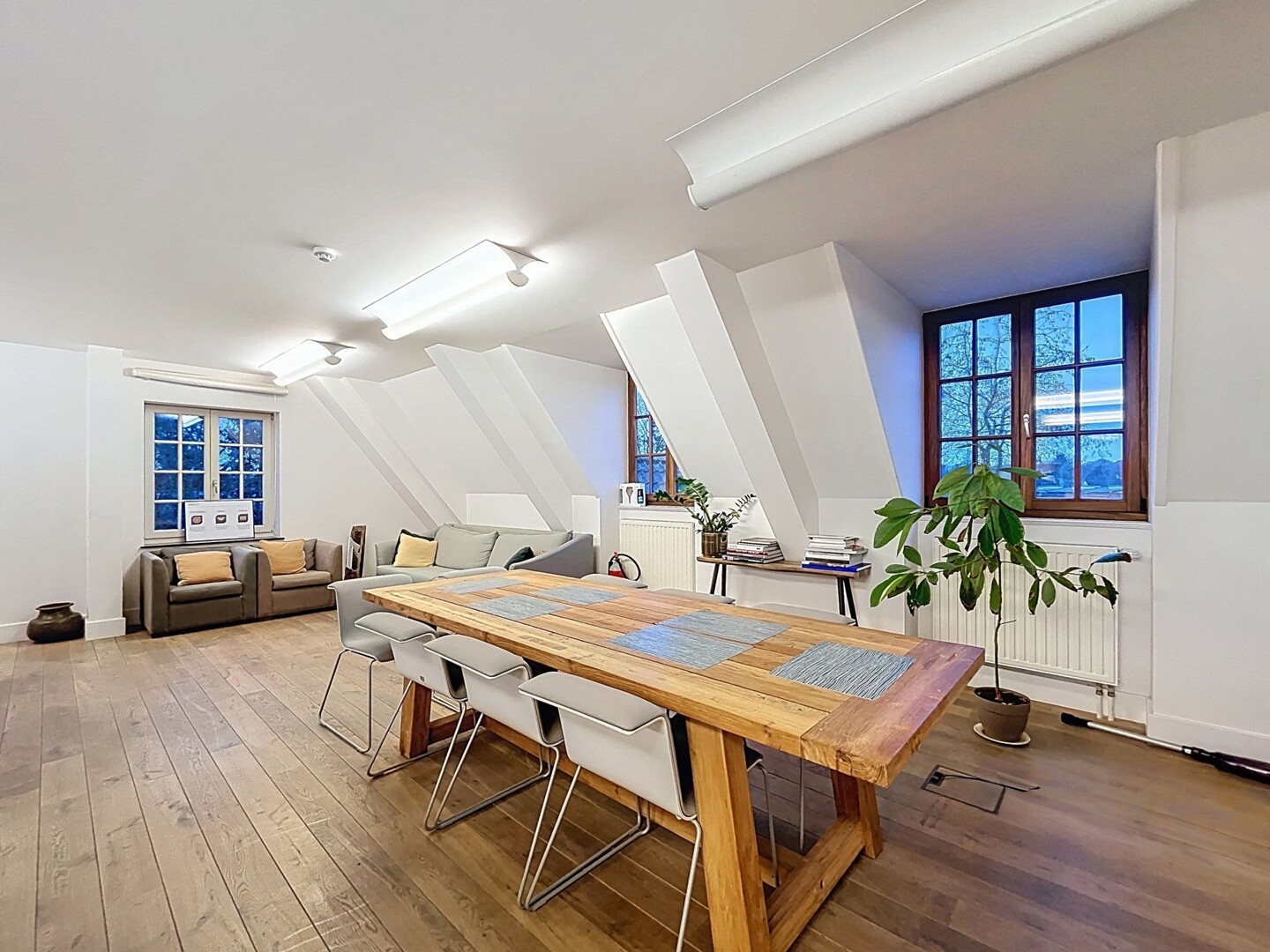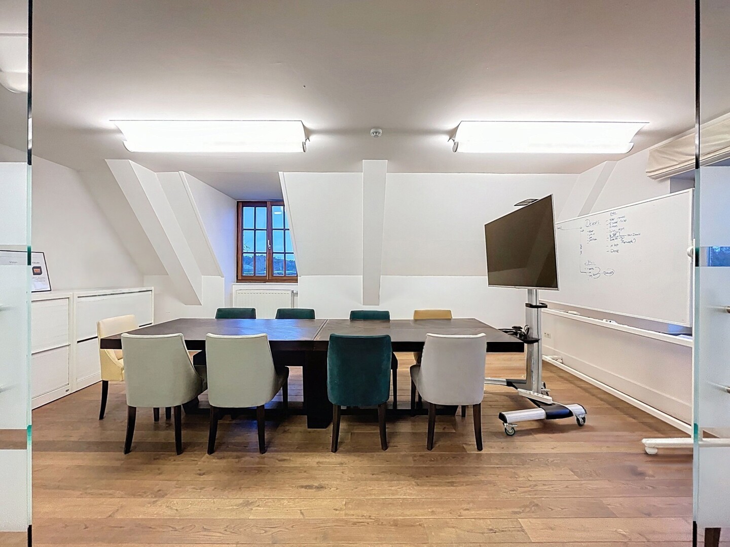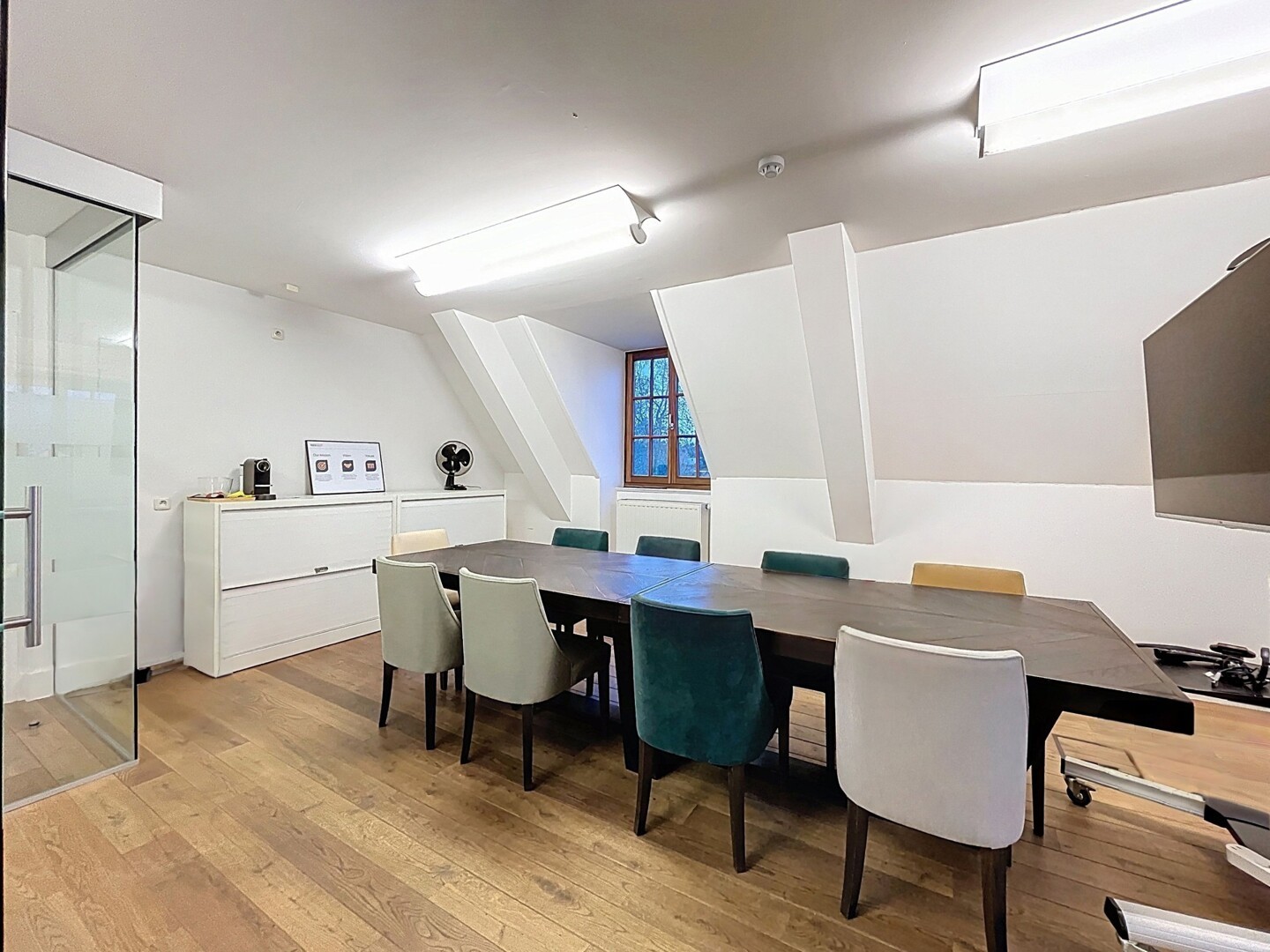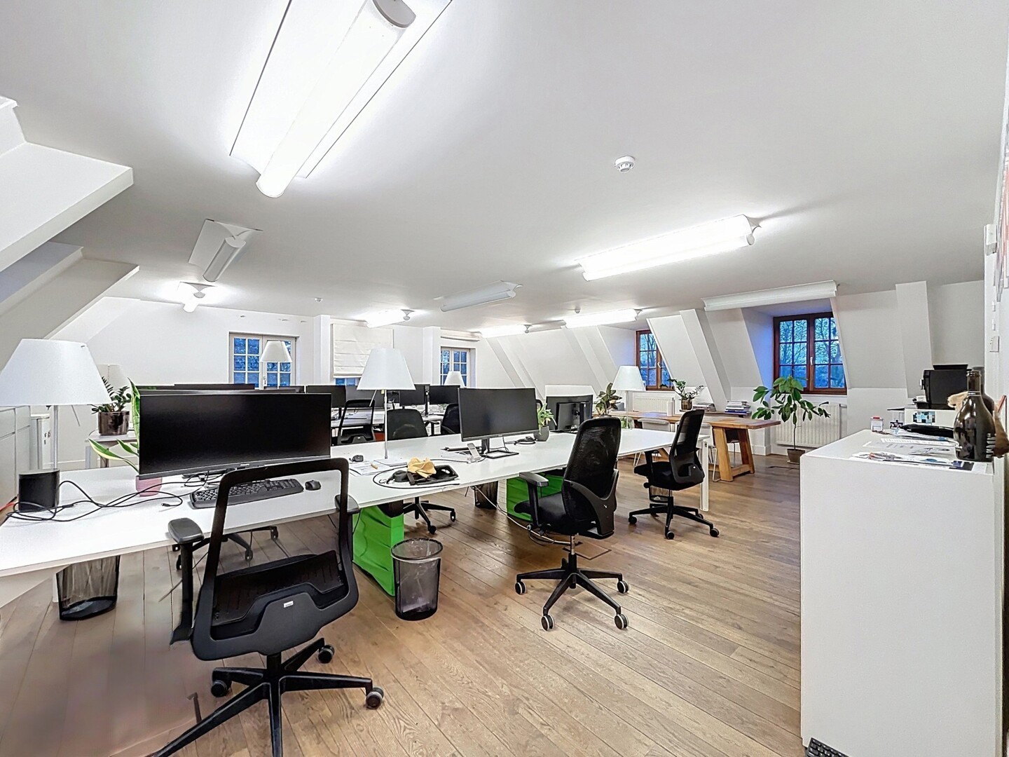 Dit lichtrijke en karaktervolle kantoor bevindt zich op de tweede verdieping van een stijlvol, landelijk gebouw en is afgewerkt met rustieke kwaliteitsmaterialen. De toegang bevindt zich discreet langs de achterzijde van het pand.