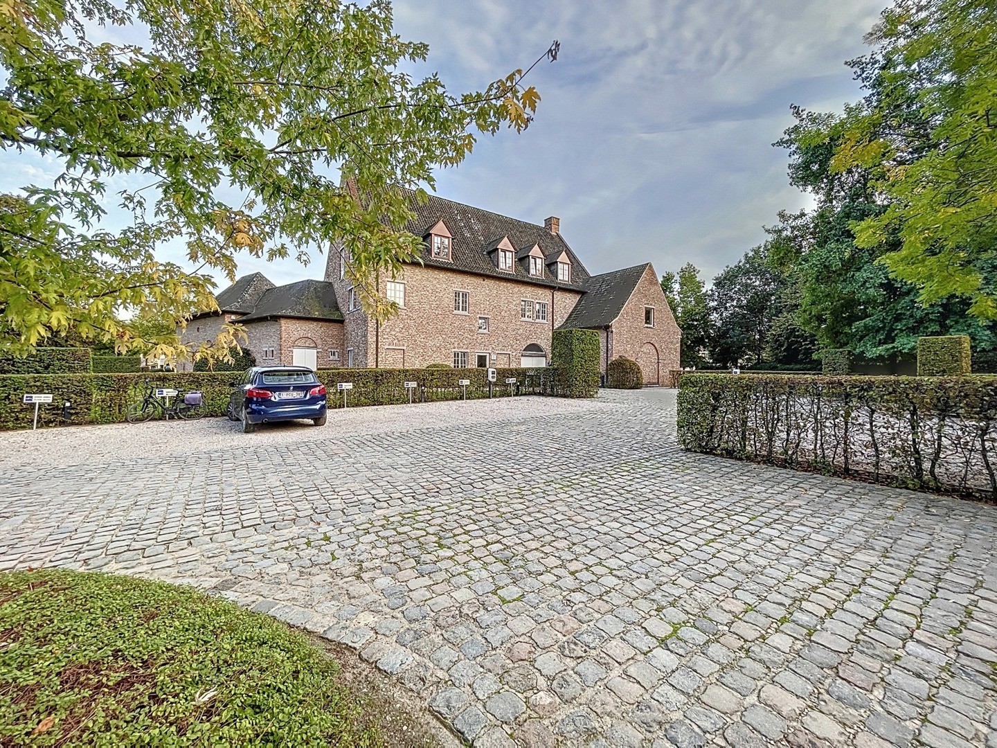 Achter het gebouw bevinden zich minstens drie private parkeerplaatsen, een uitzonderlijk voordeel in het centrum van Sint-Martens-Latem.