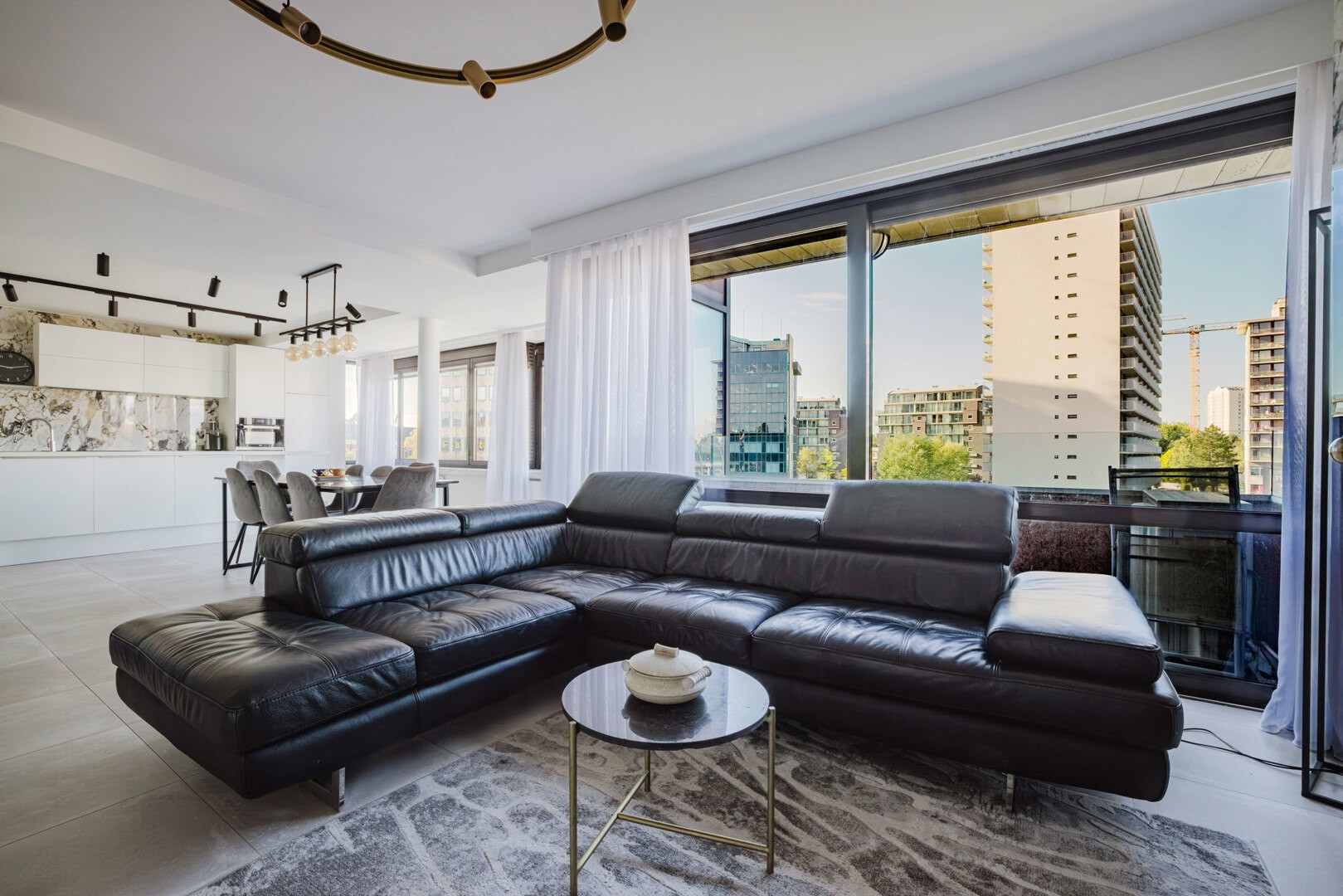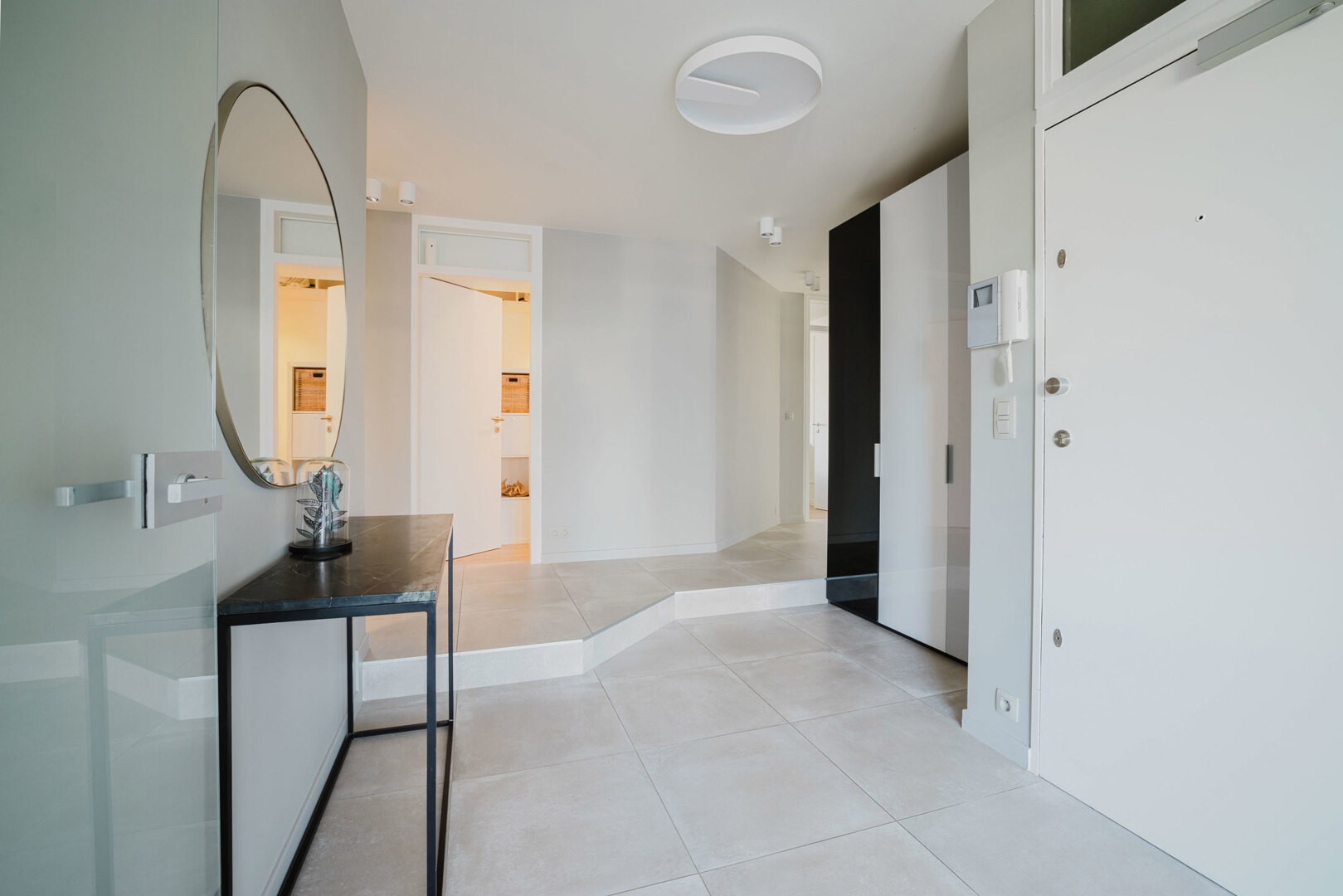 Het appartement bevindt zich op het 3de verdiep en bevat: een ruime inkomhal, een gastentoilet, de lichtrijke leefruimte met eetplaats en open volledig ingerichte keuken met toegang naar het terras, een wasberging met inloopdouche, de eerste slaapkamer met terras, een badkamer met inloopdouche en dubbele lavabo, een extra berging, de tweede slaapkamer met dubbel bed en derde slaapkamer. Elke kamer wordt verwarmd en gekoeld met een warmtepomp. Bij dit appartement hoort de mogelijkheid tot aankoop van een autostaanplaats, een absolute meerwaarde voor dagelijks comfort.