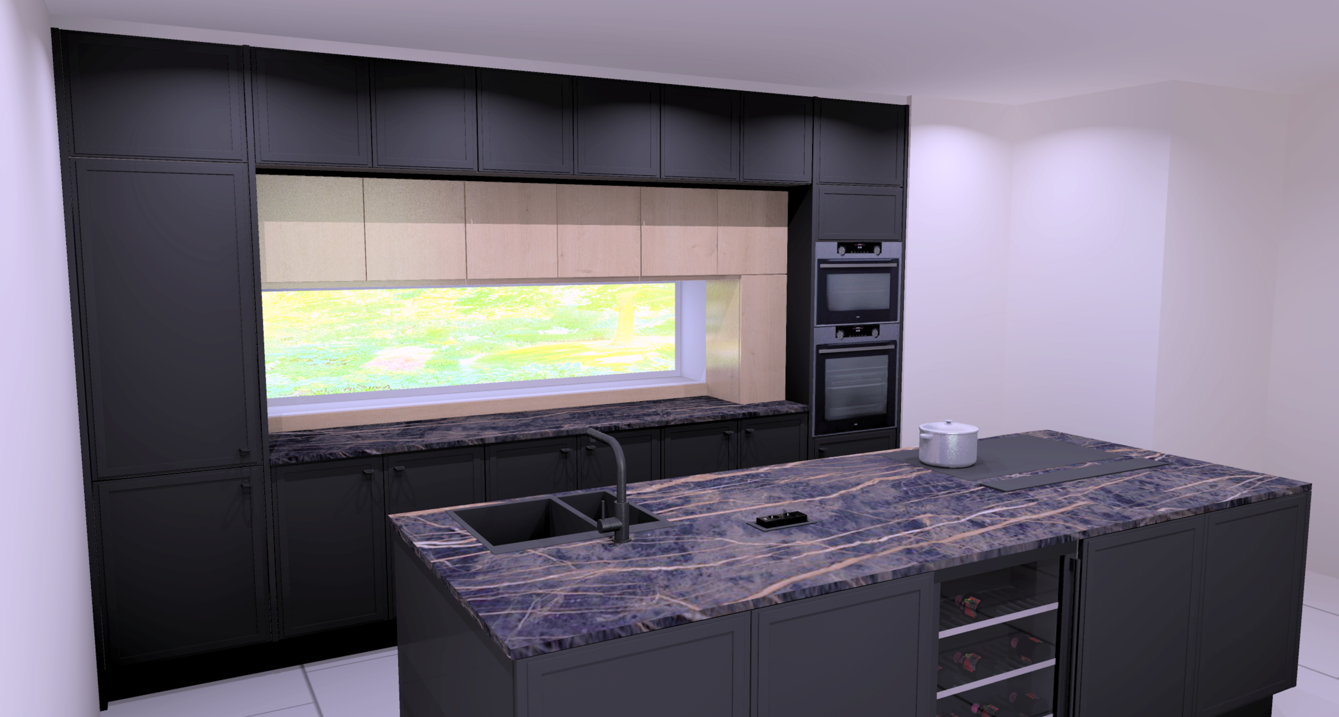 Hoogwaardig alu zwart buitenschrijnwerk met zonnewerende beglazing waarde 0.8 tevens worden er overal screens voorzien en een pivoterende houten inkomdeur van 1,25m/2,70m.