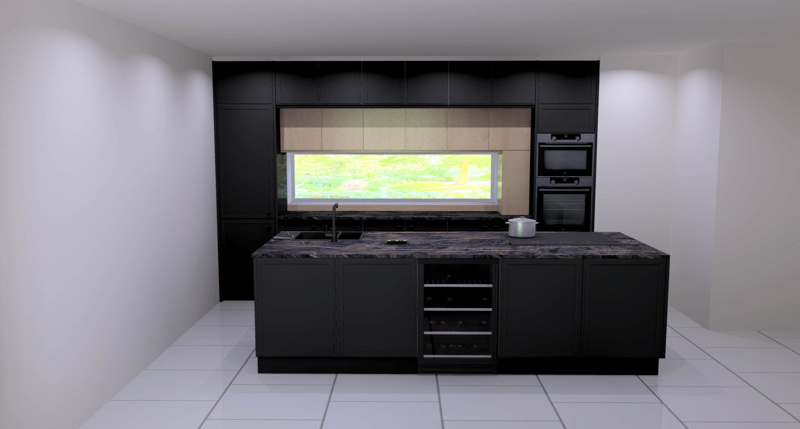 Hoogwaardig alu zwart buitenschrijnwerk met zonnewerende beglazing waarde 0.8 tevens worden er overal screens voorzien en een pivoterende houten inkomdeur van 1,25m/2,70m.