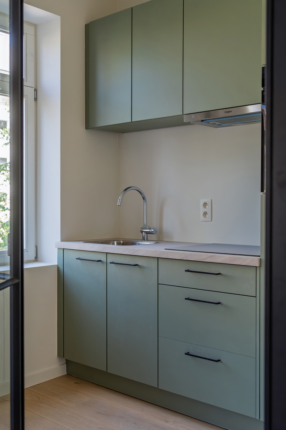 Het gerenoveerd appartement bestaat uit een lichtrijke woonkamer met toegang naar het balkon, een volledig ingerichte keuken, de badkamer met douche/lavabo/toilet en een afzonderlijke slaapkamer.