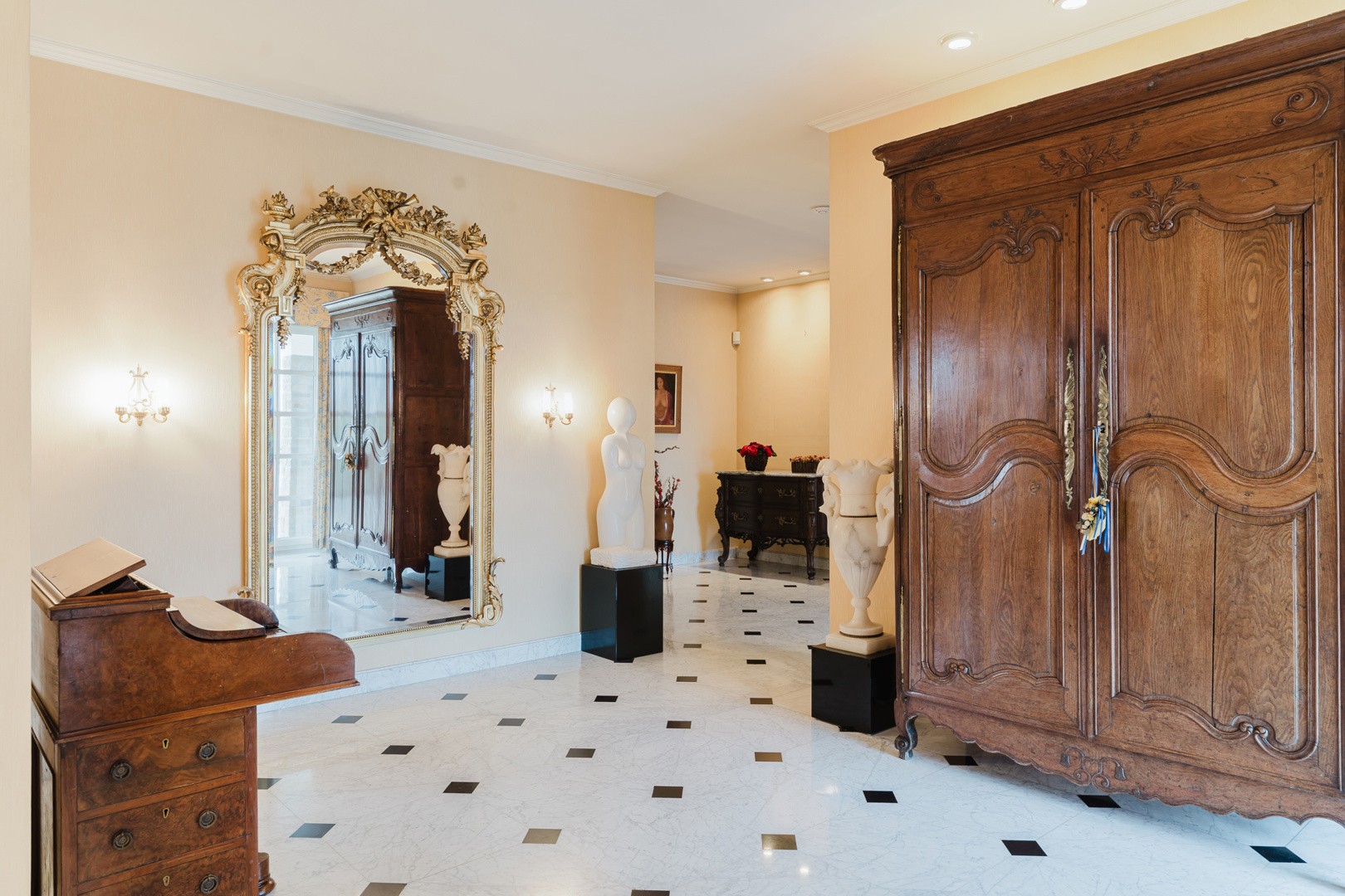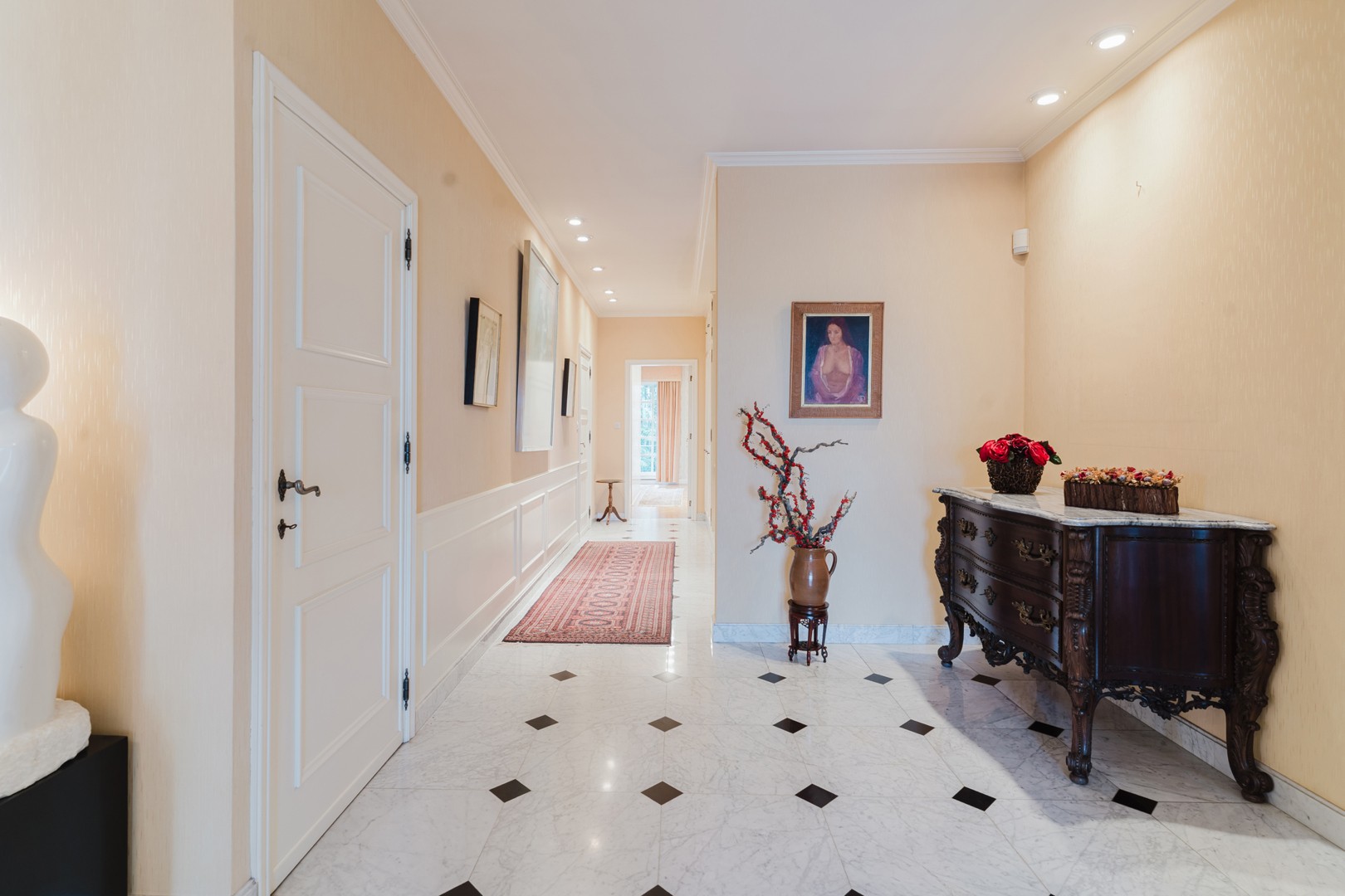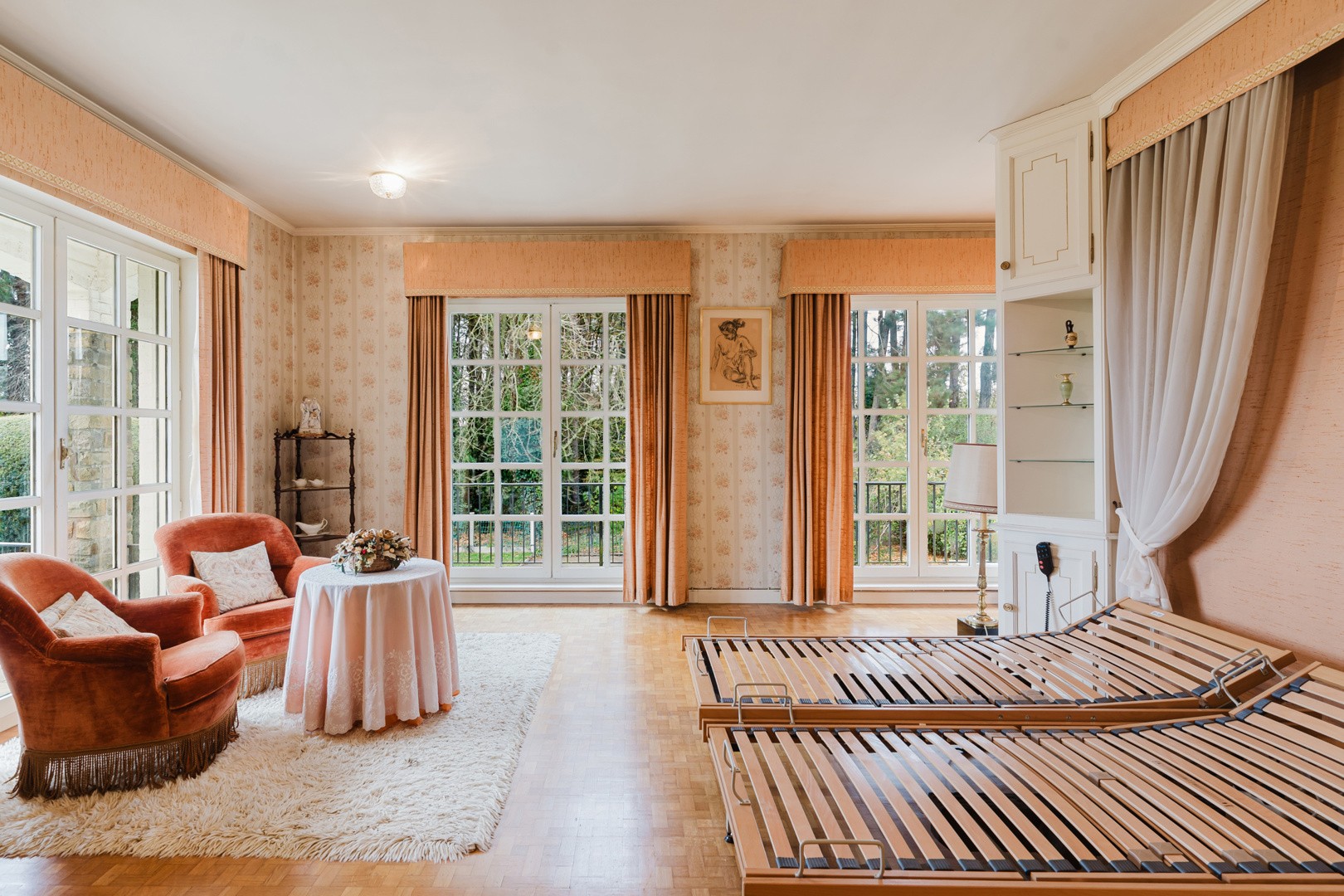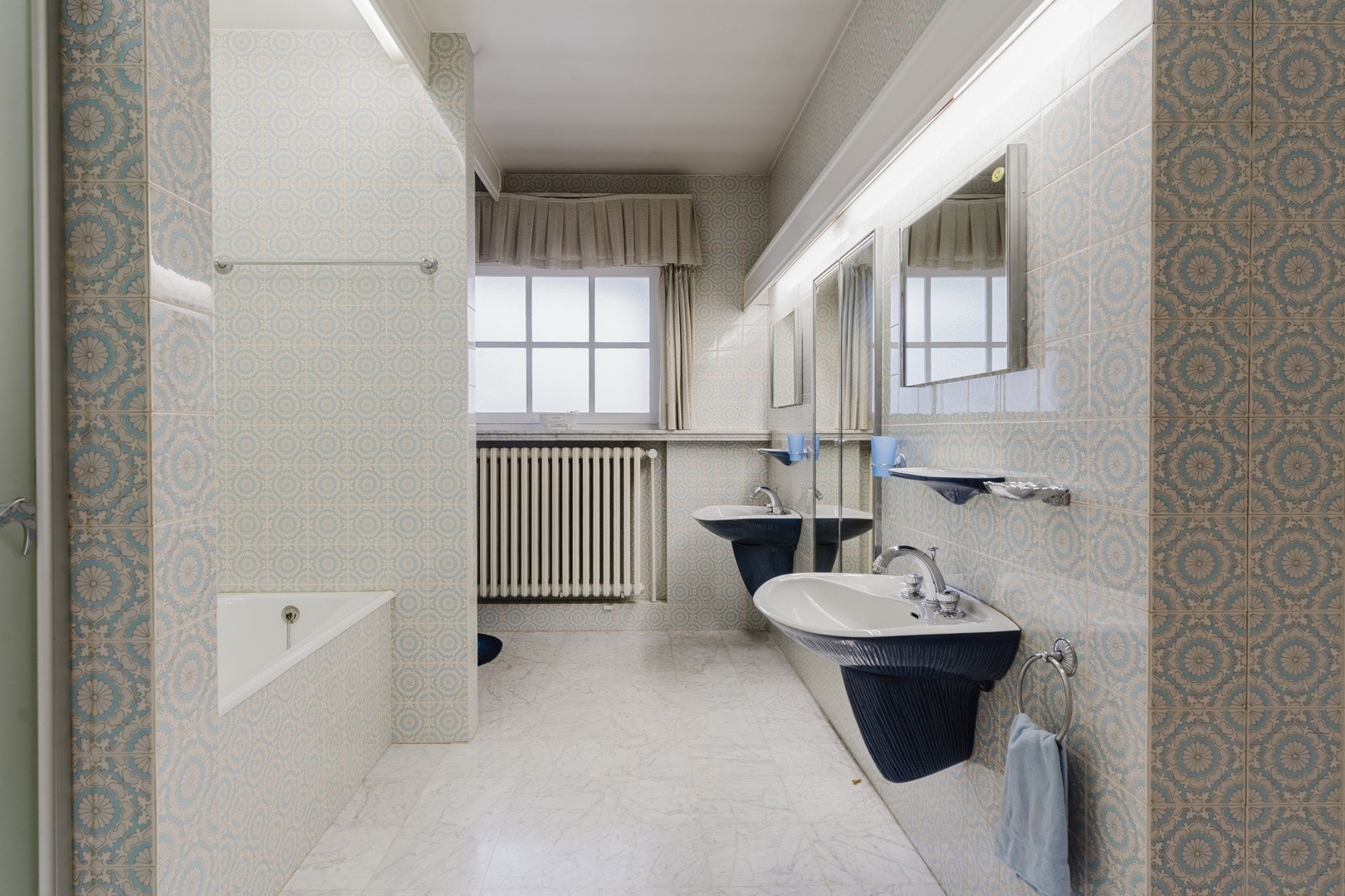 Op het gelijkvloers bevindt zich de gezellige woonkamer met zicht op de tuin en toegang tot het terras. Daaropvolgend vinden we de keuken, drie slaapkamers – waaronder een bijzonder ruime master bedroom – en de badkamer. De villa beschikt over twee inpandige garageplaatsen met directe toegang tot de woning, een ruime kelder en een indrukwekkende zolder van 180 m², met vaste trap, die nog volledig naar wens kan worden ingericht – ideaal voor extra kamers, een bureau of ontspanningsruimte.