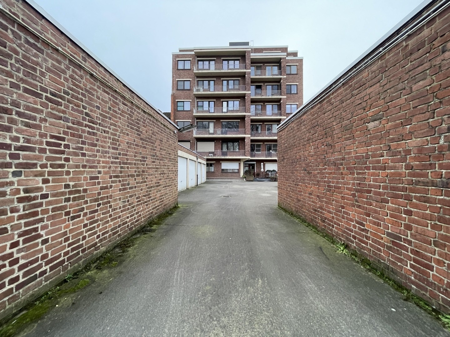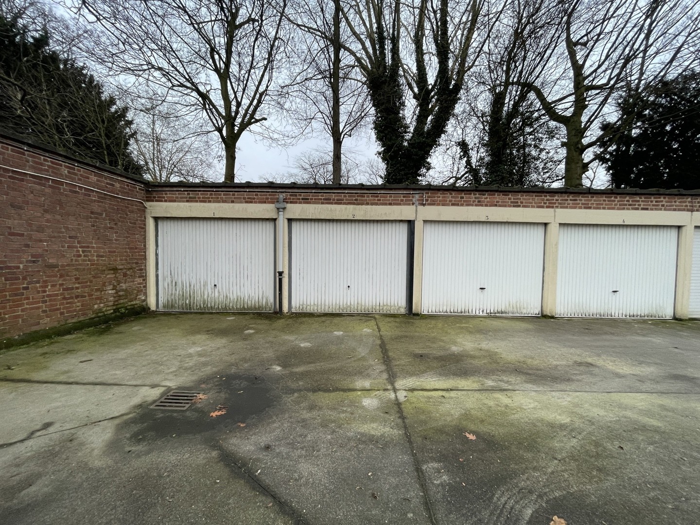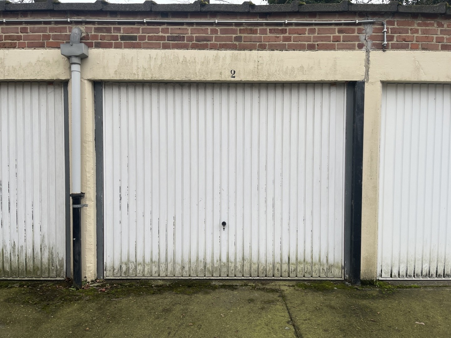 De garagebox bevindt zich in een complex achter een appartementsgebouw en beschikt over een manuele poort.