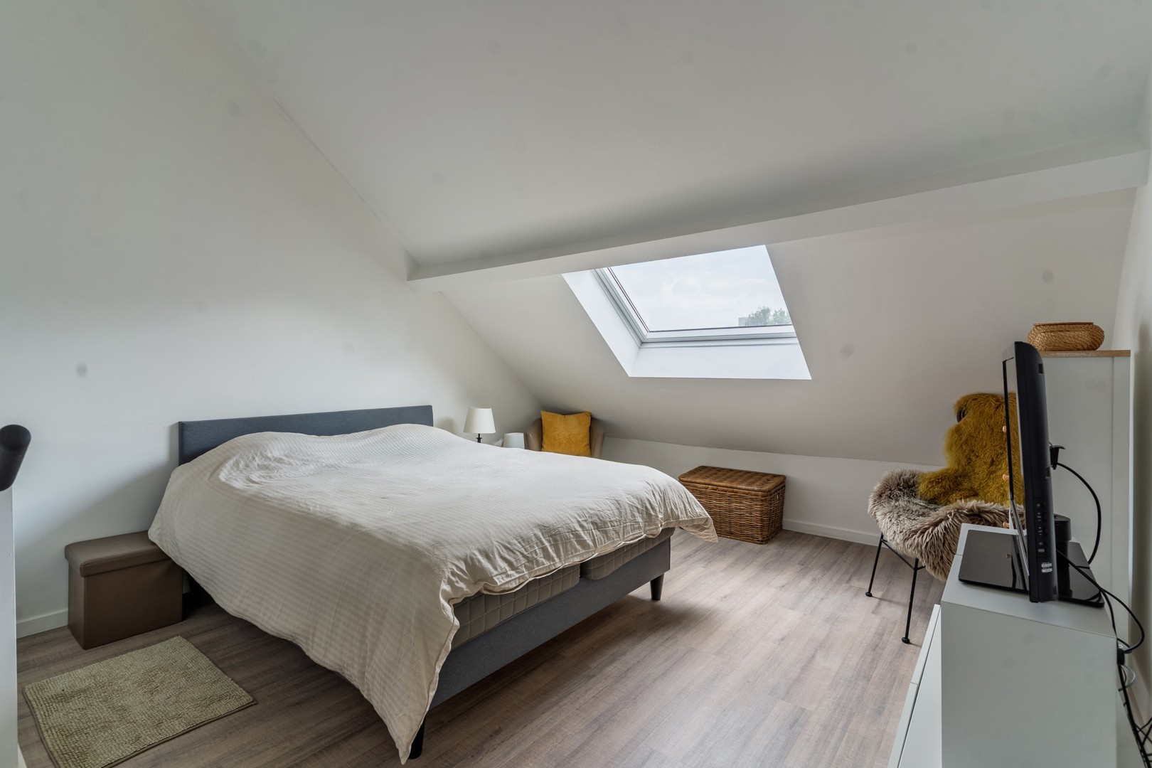 Op het gelijkvloers betreedt u de woning via een inkomhal met toegang tot de badkamer, gevolgd door een lichtrijke leefruimte met open, volledig geïnstalleerde keuken onder een sfeervolle lichtstraat. Deze ruimte geeft uit op de aangename tuin (deze wordt afgesloten van de buren). Op de eerste verdieping bevindt zich een ruime slaapkamer en een tweede, grote badkamer. De tweede verdieping beschikt over 2 volwaardige kamers.