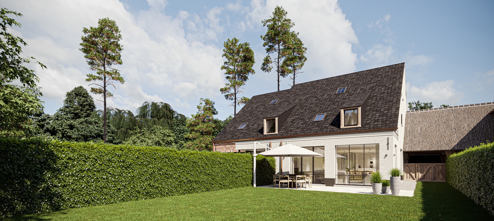 De woningen zijn voorzien van luxueuze extra’s, zoals de carport met rieten dak bij villa 2 en 3, terwijl villa 1 en 4 beschikken over een inpandige garage, die functionaliteit en stijl naadloos met elkaar verbindt.