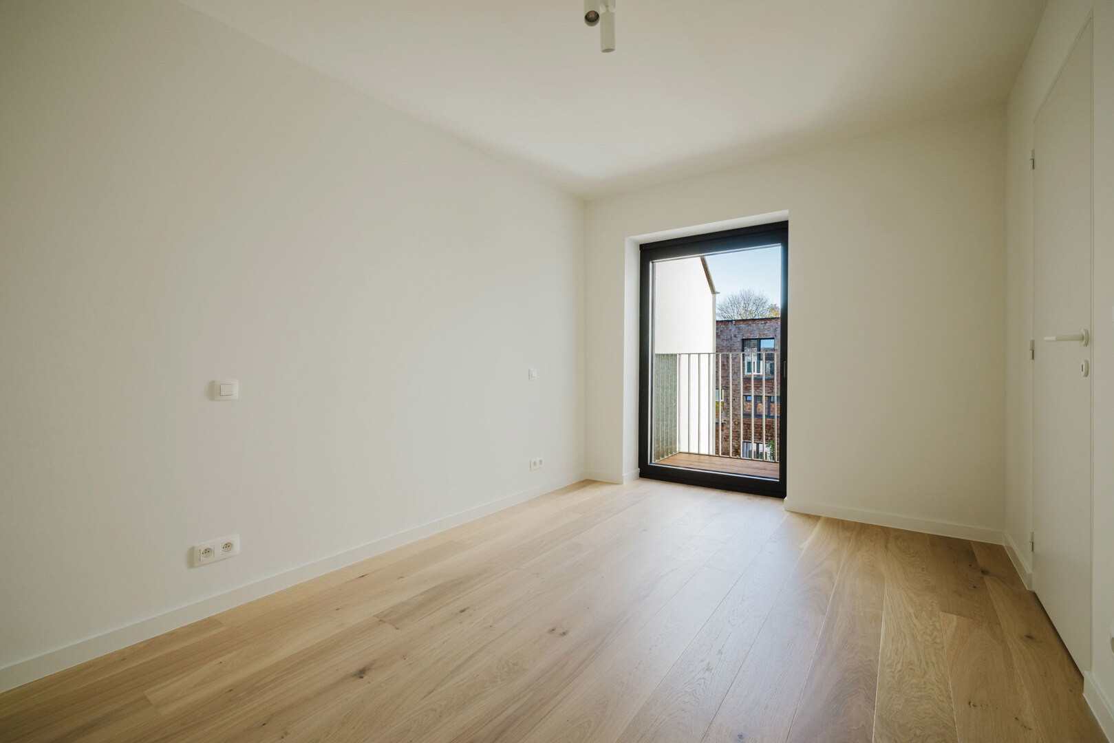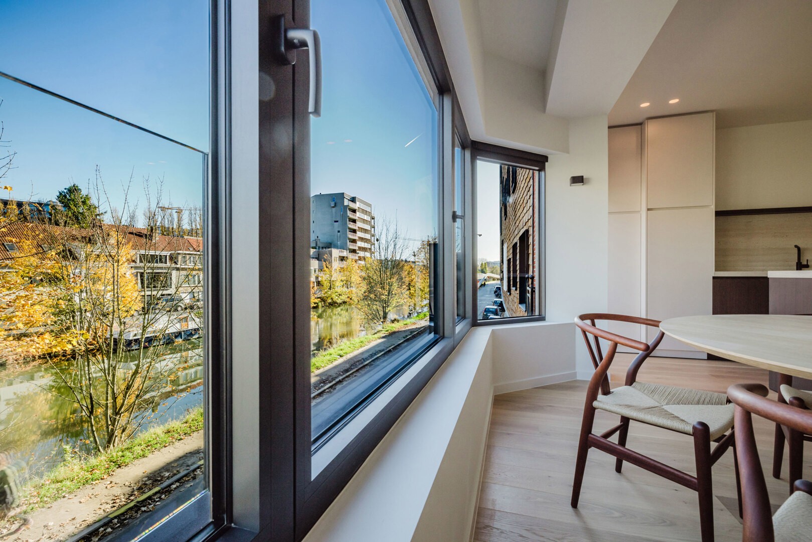De penthouse is afgewerkt met kwalitatieve parketvloer, blokdeuren en luxueuze materialen die warmte en klasse uitstralen.