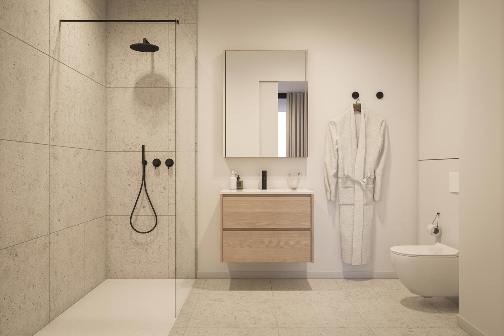 Dit appartement met twee slaapkamers en twee badkamers heeft een uniek design. Zijn elegante, moderne en comfortabele inrichting, met voldoende opbergruimte, zorgt voor functionaliteit en een huiselijke sfeer. Om de energie-efficiëntie en duurzaamheid van uw woonst te garanderen, wordt enkel gebruik gemaakt van materialen van de hoogste kwaliteit.