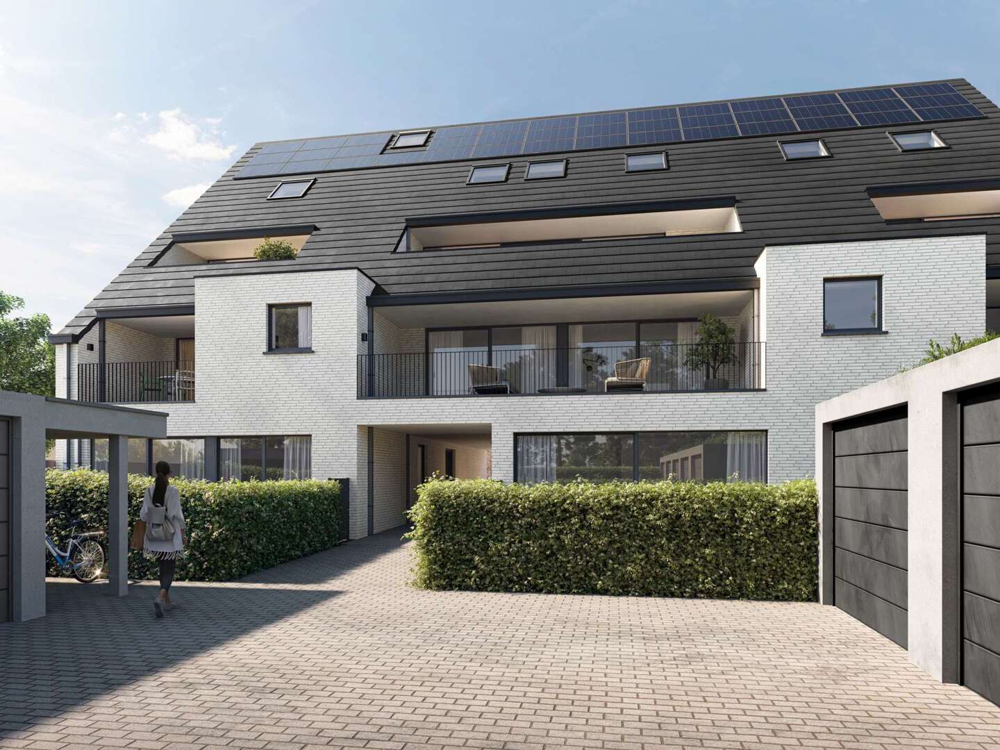 Er is een garagebox en afgesloten fietsenstallingen voorzien.