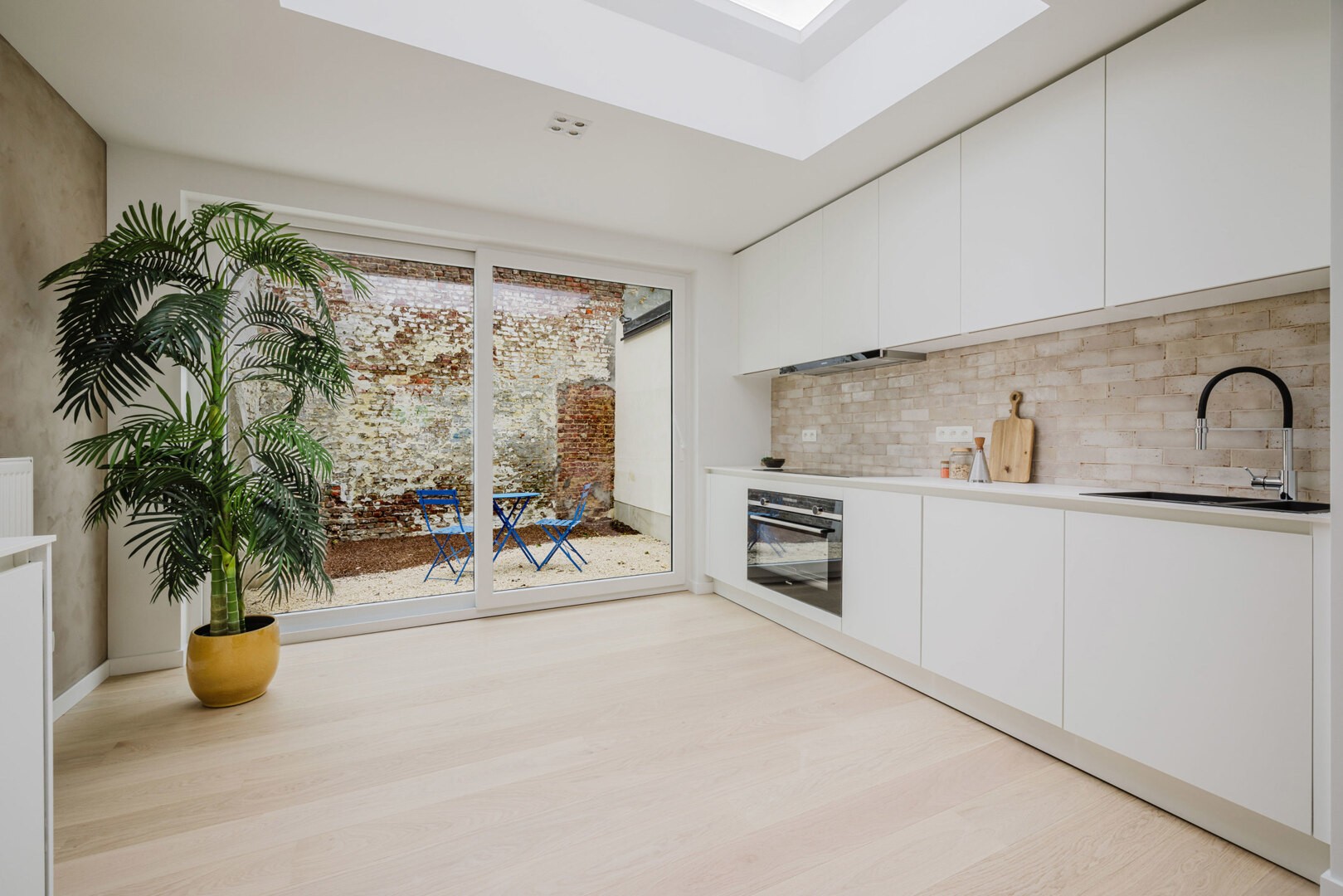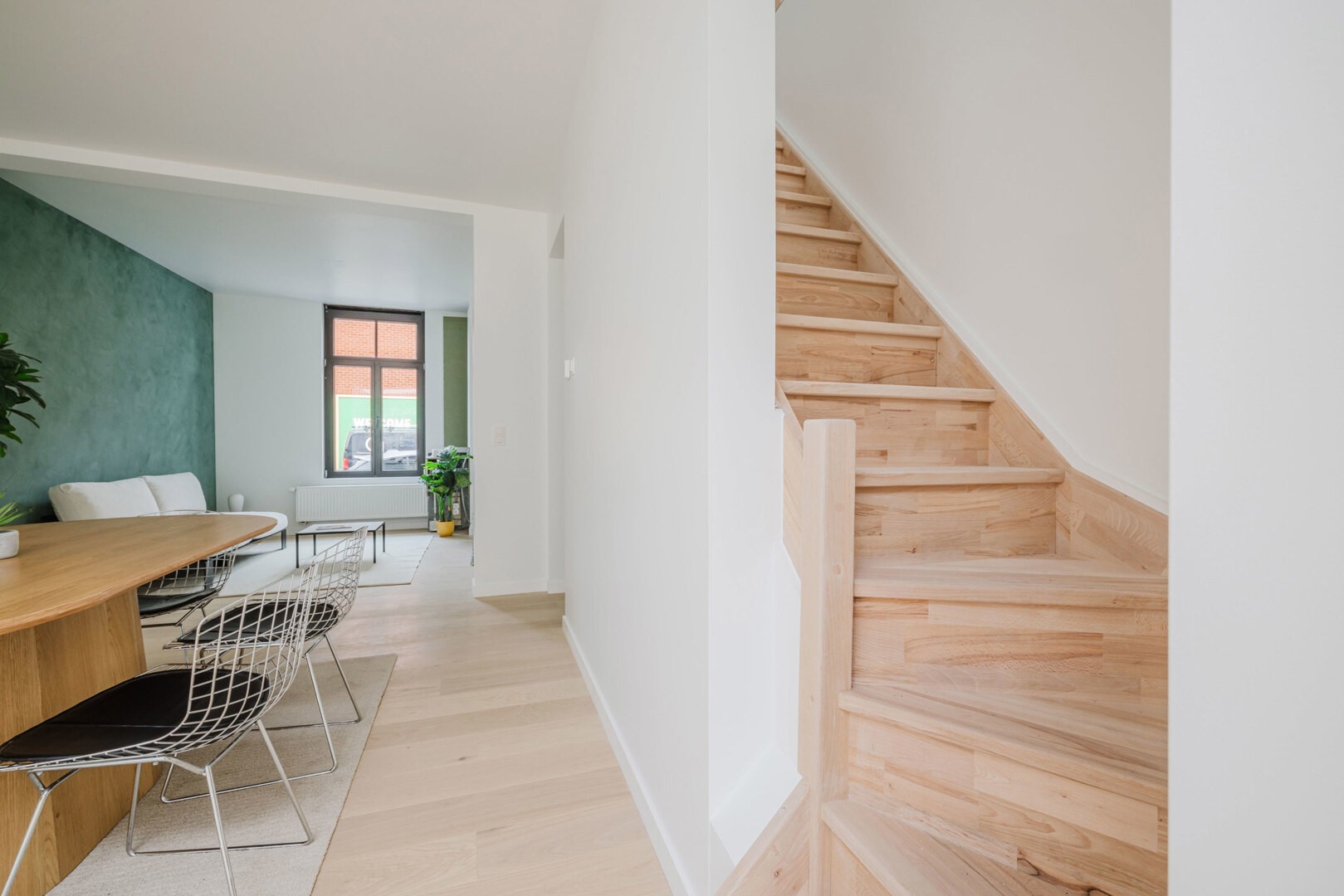 Tijdens de renovatie van deze woning werden de materialen met zorg uitgekozen alsook werd er nagedacht om de woning zo energetisch mogelijk te maken. (A-Label)